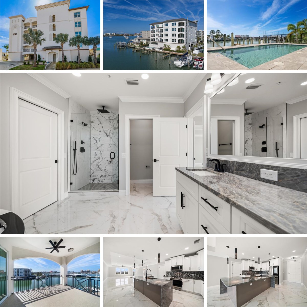 Introducing La Brisa Del Mar, a boutique luxury condominium in Clearwater’s highly sought-after Island Estates, offering refined coastal modern living along the Intracoastal Waterway with expansive water views. This move-in-ready, new construction residence showcases stunning views from expansive terraces designed for seamless indoor-outdoor living. The open-concept interior features elegant tile flooring and a beautifully appointed kitchen with quartzite countertops, a generous island, and stainless steel appliances, anchoring the main living space with modern sophistication. Offering three bedrooms and two baths, the primary suite is a tranquil retreat with a spacious walk-in closet and a spa-inspired ensuite featuring double vanities, a private water closet, a walk-in shower with a rain-style shower head, and a corner soaking tub. Built on 110 pilings and featuring PGT impact resistant hurricane windows, this quality new construction offers exceptional peace of mind. Each residence also includes an under-building assigned parking space plus one additional unassigned space. Residents enjoy a waterfront pool and the rare opportunity to purchase a deep water Intracoastal boat slip. Ideally located just minutes from shopping, dining, and world-famous Clearwater Beach, La Brisa Del Mar delivers private, polished waterfront living in an intimate setting.